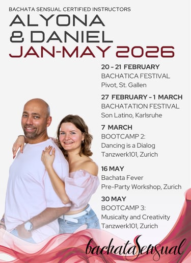 Gemeinsam mit meinem Tanzpartner Daniel aus Zürich unterrichte ich regelmäßig Bachata Sensual Partnerwork Workshops in der Schweiz und in Deutschland.