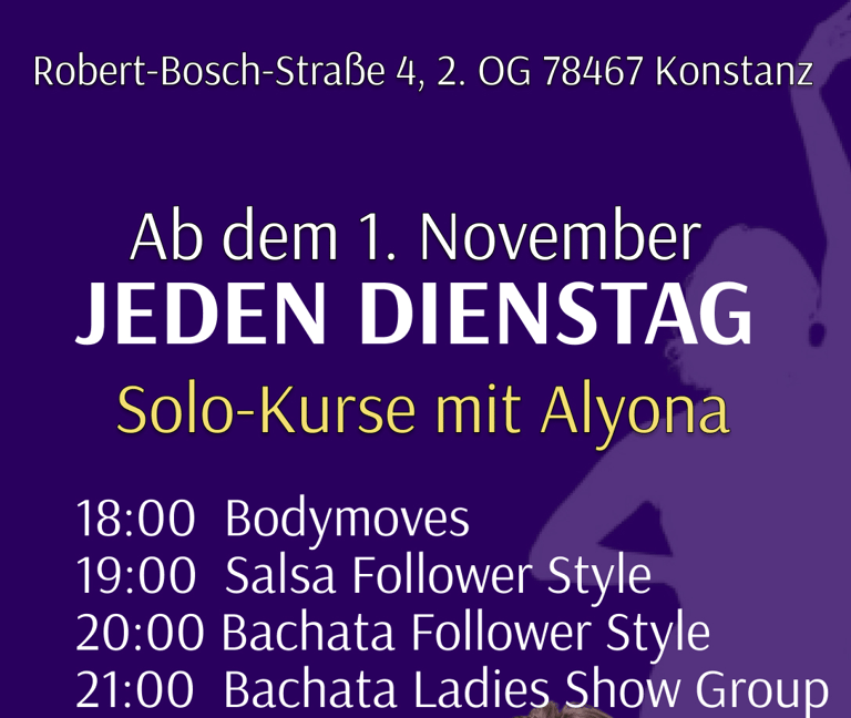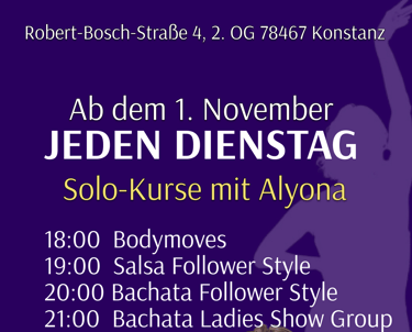 Jeden Dienstag finden die regelmäßige Bachata und Salsa Solo-Kursen in Konstanz statt.